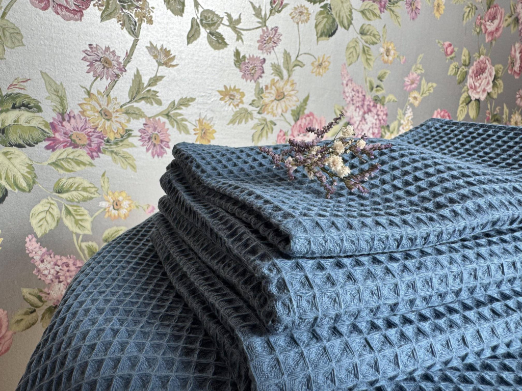 Bavlněný ručník s vaflovým vzorem - tmavě modrý - jeans